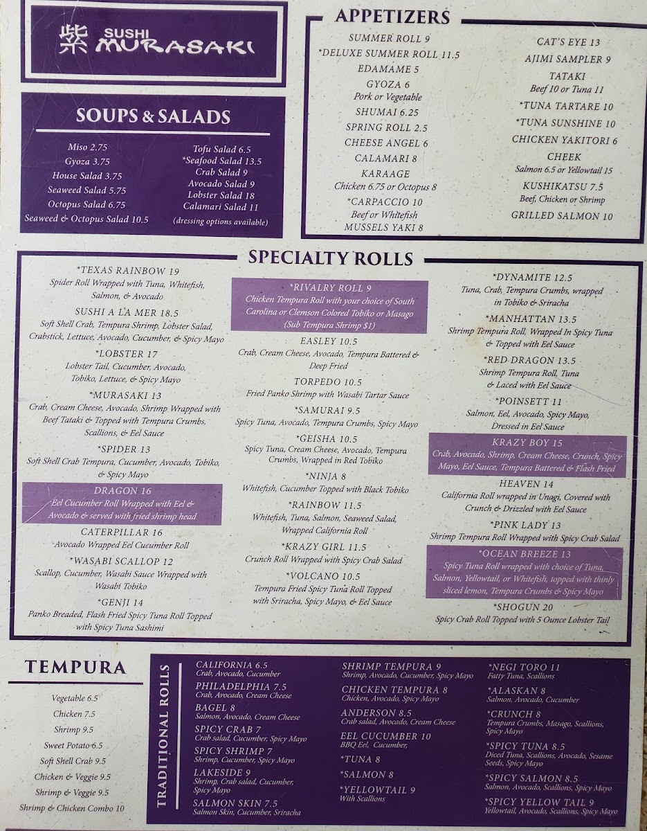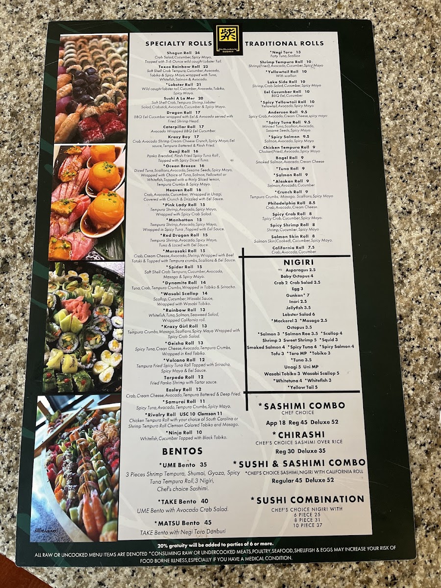 Sushi Murasaki Menu